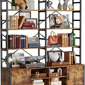 IRONCK Bookshelves 6 Tiers 73.1 inch Tall Industrial Bookshelf with Doors, Bookcase and Display Shelf, Open Storage Cabinet for Living Room, Home Office