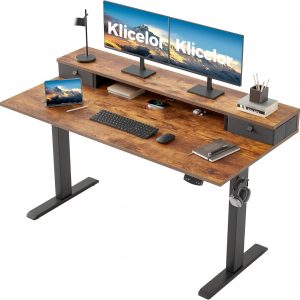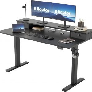 Klicelor 55″ Electric Standing Desk with Drawers & Monitor Shelf – Black