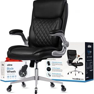 Oline Ergo Lux Ergonomic PU Leather Office Chair – Rolling Home Desk Chair with Adjustable Armrests, 3D Lumbar Support and Blade Wheels – Computer Gaming Chairs, Executive Swivel Chair (Black Leather)