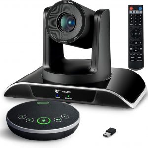 TONGVEO All-in-One Conference Room Video Camera System Al Auto-Tracking HD1080P 60fps 3X Optical Zoom USB3.0 HDMI PTZ Camera and Bluetooth Conference Speakerphone with Microphones