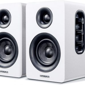 Sanyun SW208 3″ Active Bluetooth 5.0 Bookshelf Speakers – 60W Carbon Fiber Speaker Unit – Built-in 24bit DAC Dynamic 3D Surround Sound 2.0 Computer PC Monitor Gaming (Pair, White)