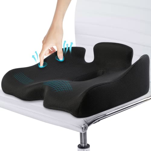 Details: Benazcap Memory Seat Cushion for Office Chair Sciatica & Back Pain Relief Memory Foam Firm Coccyx Pad for Car, Wheelchair, Gaming chair and Desk Chair