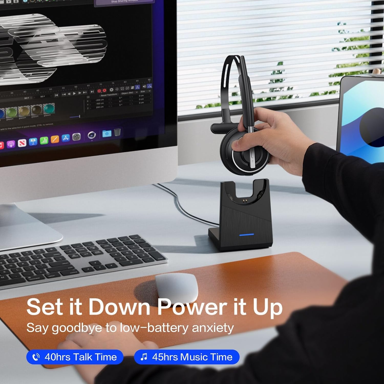- Industry-Leading 99.99% Noise Cancellation – Stay Focused Anywhere: Equipped with advanced noise-canceling technology, our Bluetooth headset blocks out up to 99.99% of background noise, ensuring crystal-clear calls in even the noisiest environments—perfect for busy offices, customer service, and on-the-go professionals.